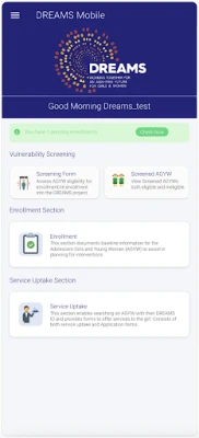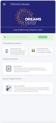 DREAMS Mobile Application empowers partners to collect and manage data on young women and girls, while supporting access to health services, mentorship, education, and social support. It offers tools for tracking progress, connecting with mentors, and accessing resources that promote empowerment, resilience, and healthy futures.