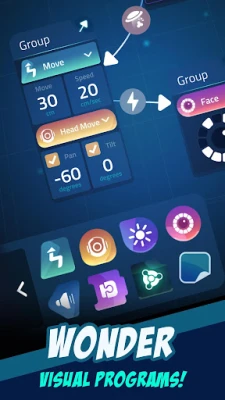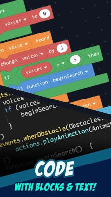 Send and receive chat messages to learn about your new robotic companion. Customize sensor input to react with lifelike behaviors. Easily switch between block-based graphical programming or text-based code to build your own powerful programs at the skill level that’s right for you. With control mode, you can pilot cue through exciting robotics adventures as you seek, avoid, and explore!