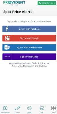 • Custom Email & Text Spot Price Alerts for Gold and Silver using Facebook, Google+, Yahoo!, or Outlook