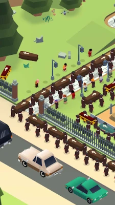 You are the boss of a cemetery and you can gradually upgrade a poorly managed graveyard into a super-luxury one.