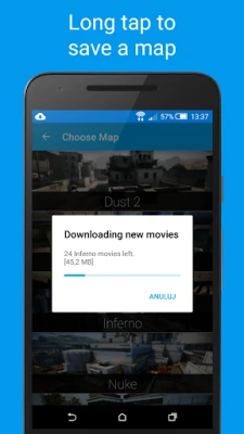 • Offline mode! Just one long tap while choosing a map to download all of its movies.