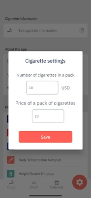 With this app, you can easily operate it and note down the number of times you smoke every day.